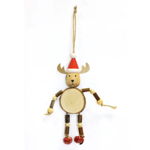Karácsonyi dekoráció (rönk rénszarvas piros csengő cipőben)