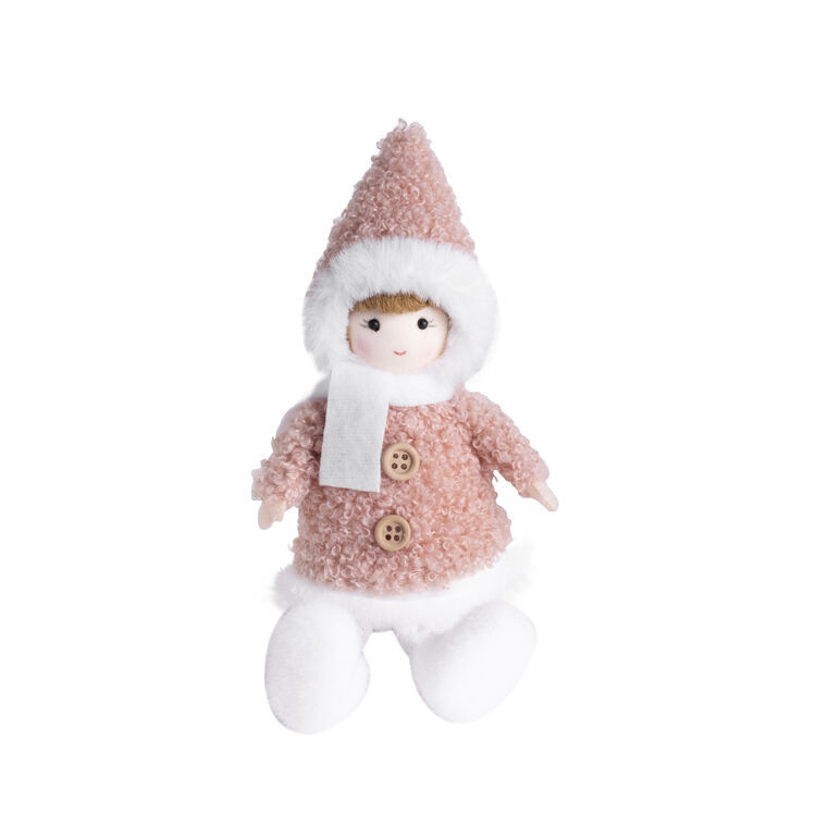 Textilből készült karácsonyi dekoráció- rózsaszín bundás lány. Ideális belső terek ünnepi díszítésére.