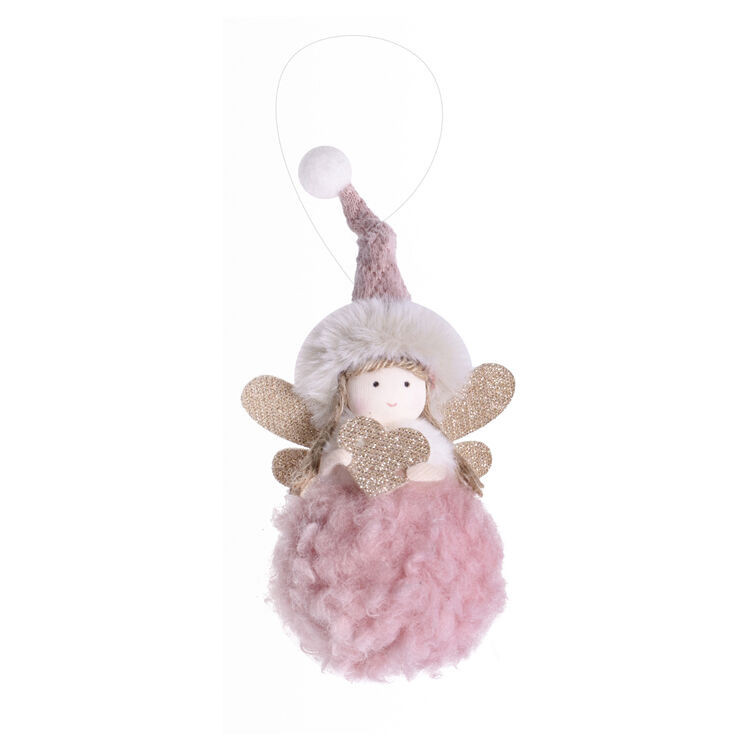 Karácsonyi dekoráció (rózsaszín, kötött sapkás angyal)