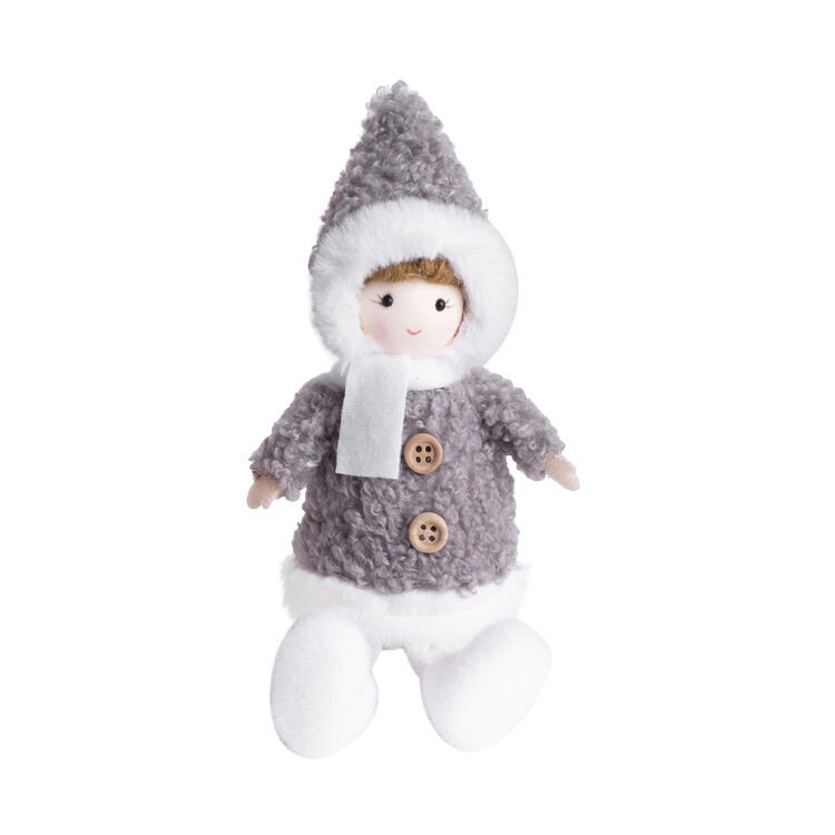 Textilből készült karácsonyi dekoráció- szürke bundás lány. Ideális belső terek ünnepi díszítésére.