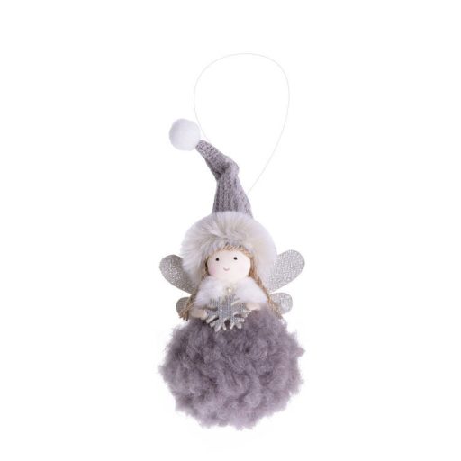 Karácsonyi dekoráció (szürke, kötött sapkás angyal)