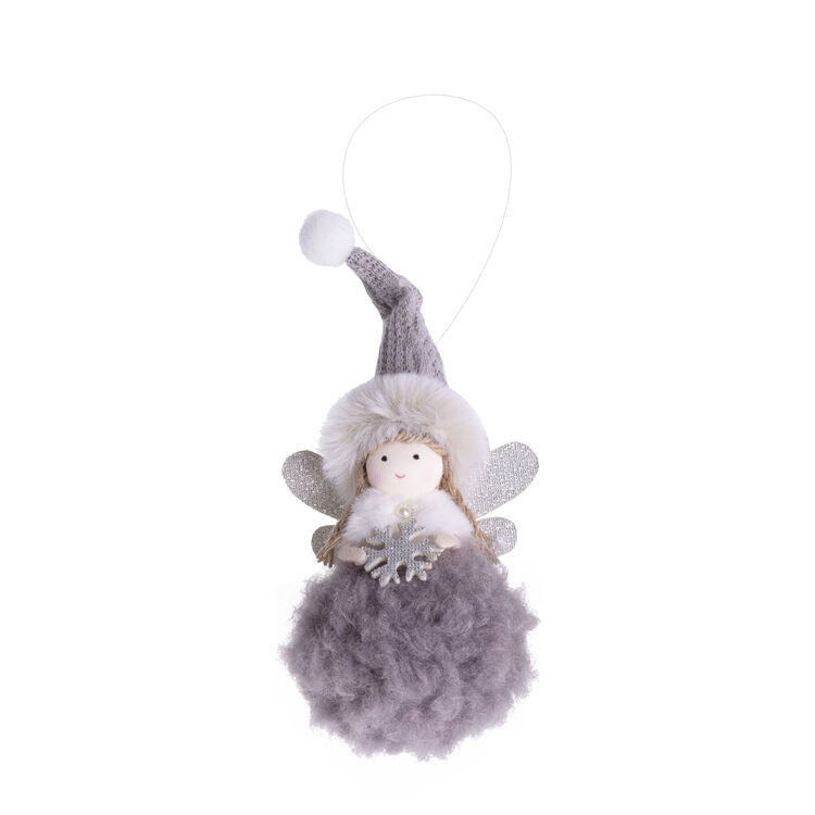 Textilből készült karácsonyi dekoráció- szürke, kötött sapkás angyal. Ideális karácsonyfák és belső terek ünnepi díszítésére.
