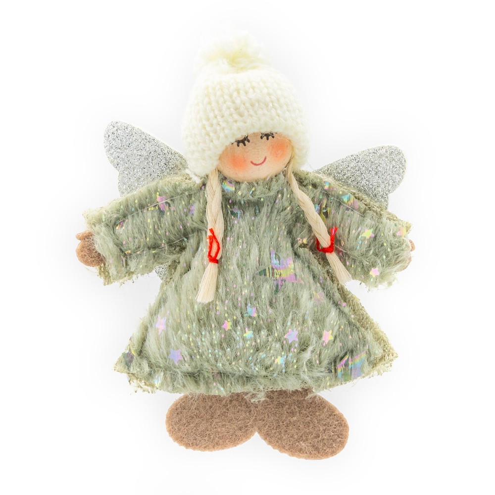 Karácsonyi dekoráció (szürke, plüss angyal sapkában)