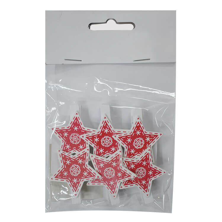 Karácsonyi dekorációs csipesz (6 db-os, piros-fehér csillag)