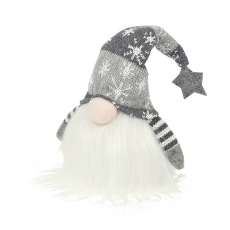 Karácsonyi dekorációs figura LED világítással (kicsi manó szürke sapkában)