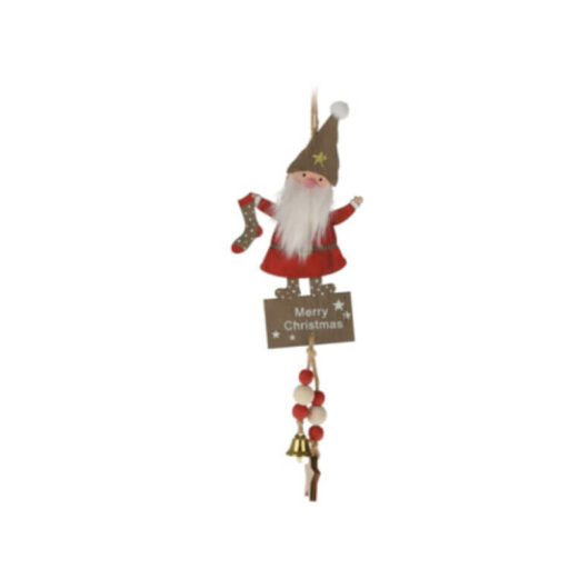 Karácsonyi dekorációs figura (Mikulás csillagos sapkában, kezében zokni)