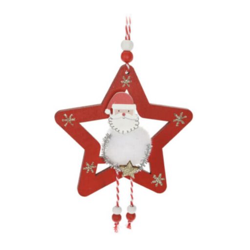 Karácsonyi dekorációs figura (Mikulás fehér ruhában arany színű csillaggal, piros csillagban)