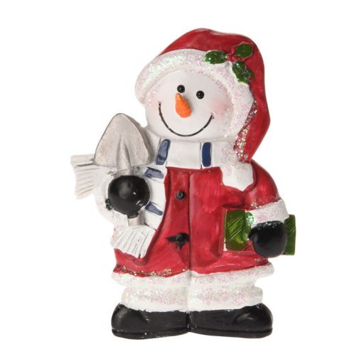 Karácsonyi hűtőmágnes (hóember ásóval, fehér sálban)