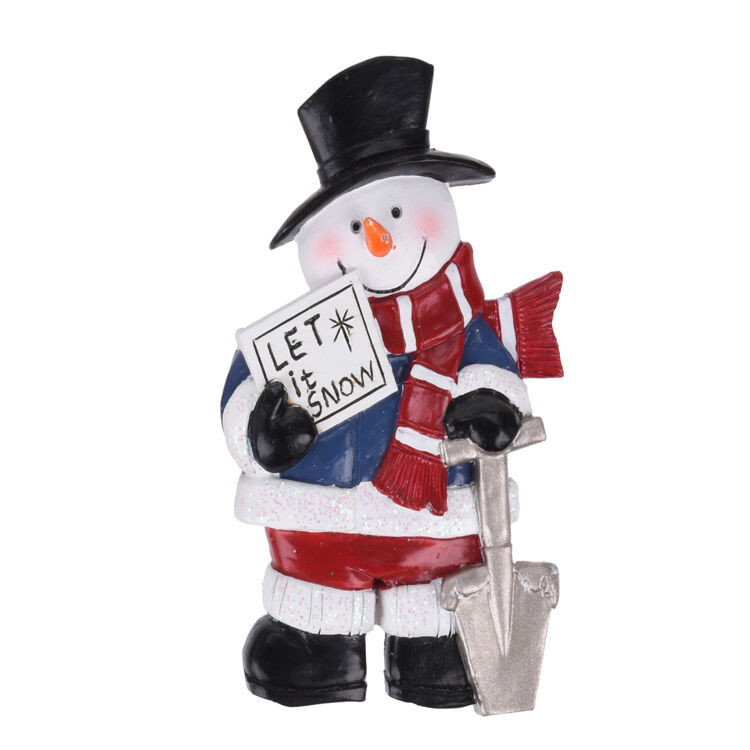 Karácsonyi hűtőmágnes (hóember ásóval, piros sálban)