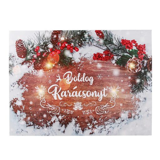 Karácsonyi vászonkép LED világítással (havas tábla Boldog Karácsony felirattal)