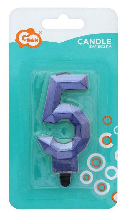 Kék 5-ös Diamond Metallic számgyertya, tortagyertya