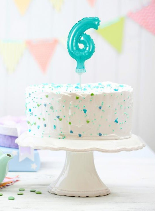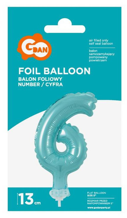 Kék 6-os Light Blue szám fólia lufi tortára 13 cm