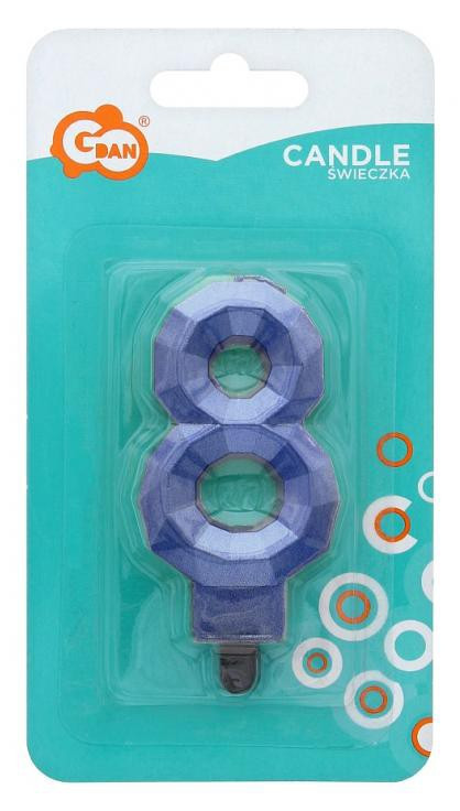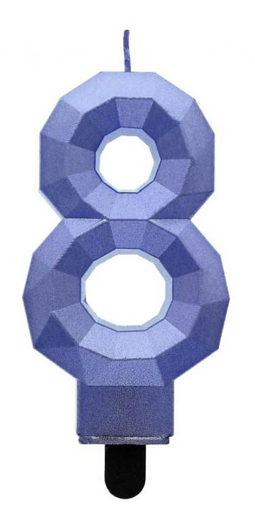 Kék 8-as Diamond Metallic számgyertya, tortagyertya