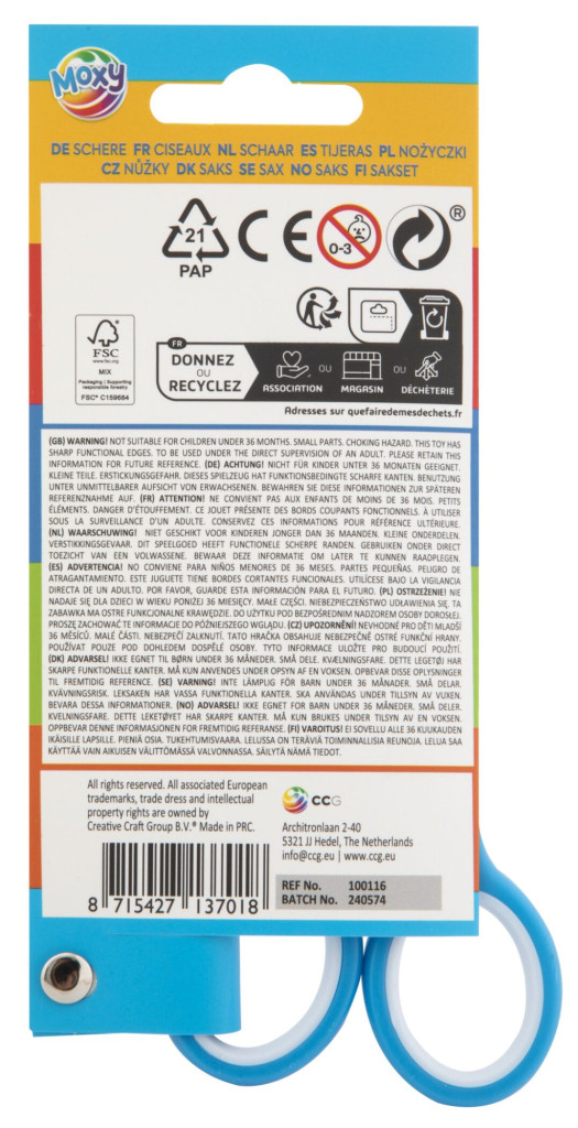 Kék Moxy balkezes olló 13 cm