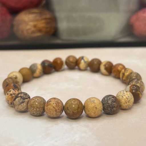 Képjáspis 8mm-es ásványokból készült karkötő, rugalmas szilikonra fűzve.