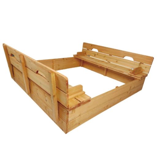 Különleges kialakításának köszönhetően a homokozó két oldalán található padok egyszerűen lehajthatók, így a teljes homokozó fedélként zárható. Ez nemcsak biztonságos és praktikus megoldás, hanem segít tisztán tartani a homokot, megvédve azt a levelektől, szennyeződésektől vagy háziállatoktól.
