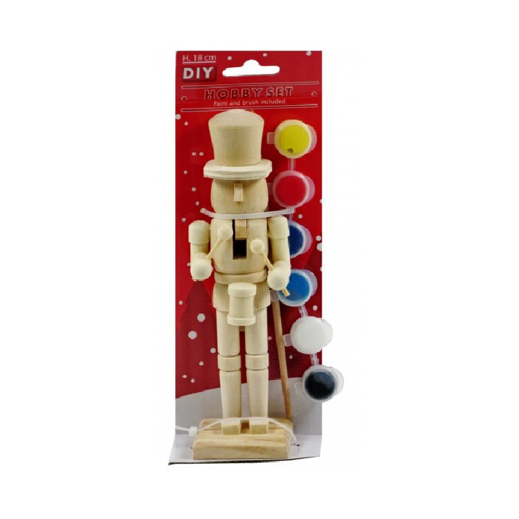 Kifesthető natúr diótörő, ecsettel és festékekkel (dobos)