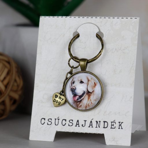 Kutyás, bronz színű kulcstartó, amely tökéletes választás minden Golden retriever rajongónak