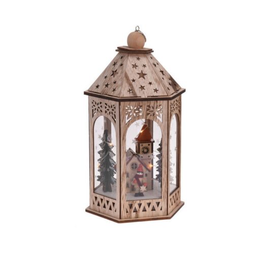 Lámpás, LED világítással (ház toronnyal, natúr)