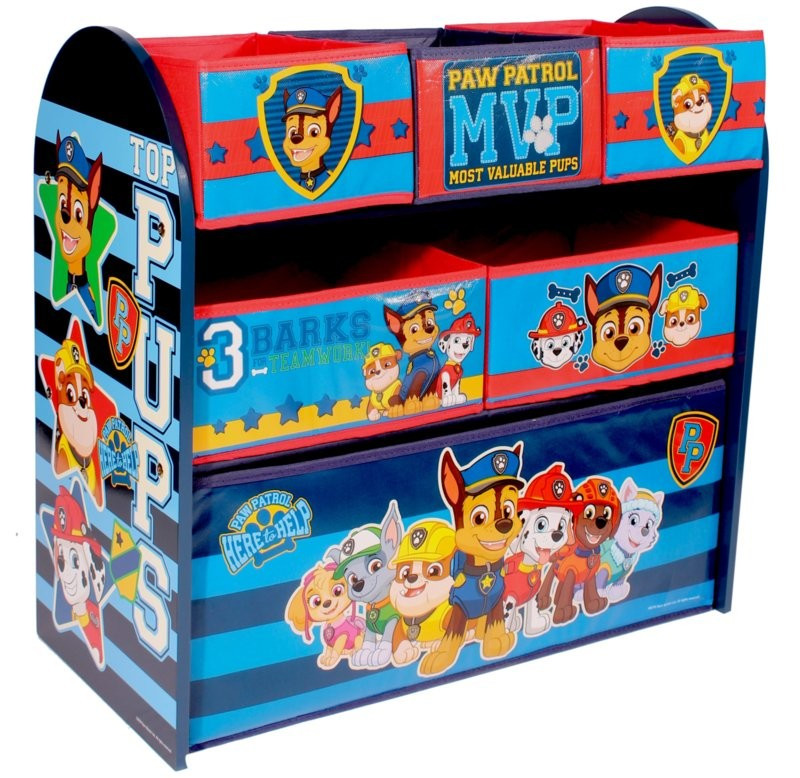 A Paw Patrol tárolóállvány erős MDF kerettel és 6 szövet tároló fiókkal rendelkezik, 3 méretben.