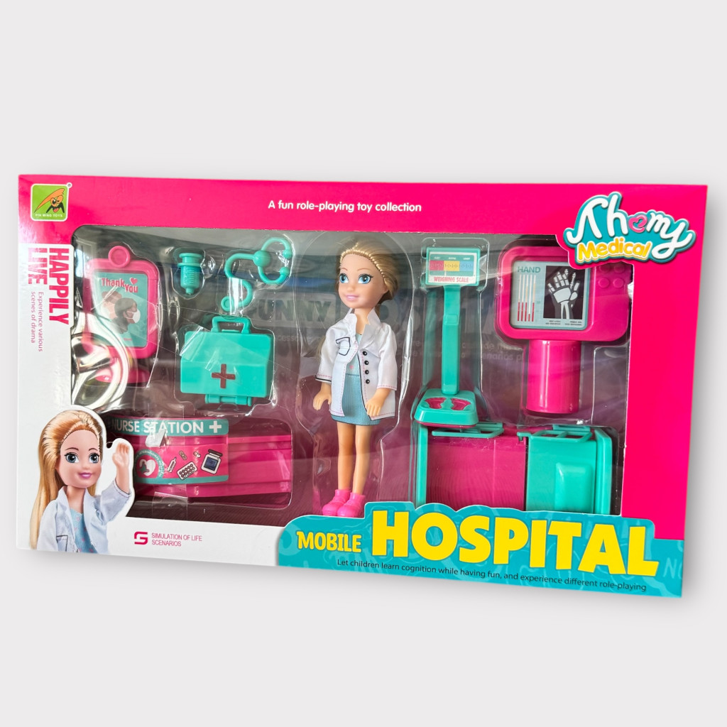 A szett egy mozgatható kórházi egység, babával, röntgengéppel és rengeteg kiegészítővel, hogy a gyerekek eljátszhassák a gyógyítás izgalmas világát.