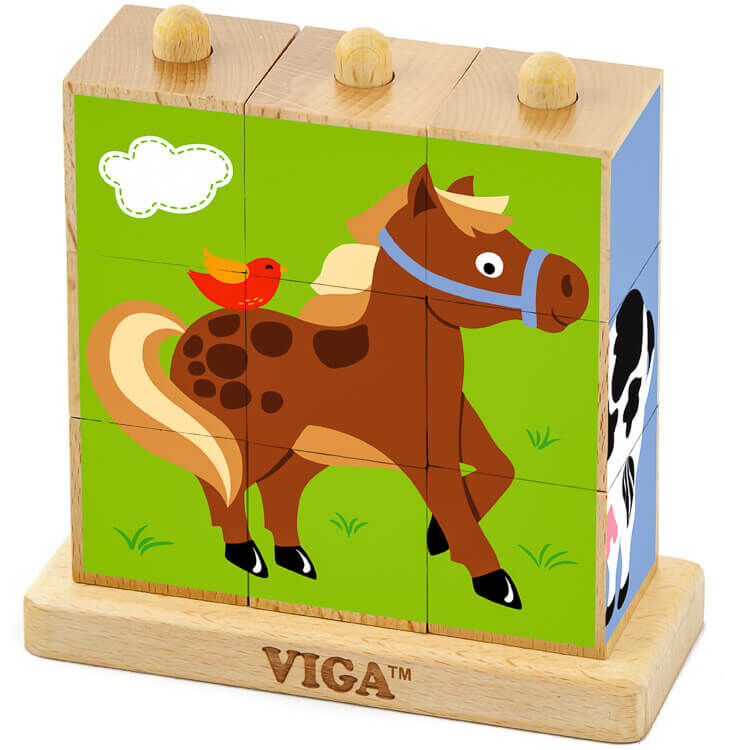 A farmos montesszori játék egy olyan képességfejlesztő, ami ismertet a színekkel, formákkal, állatokkal. Kiváló oktató eszköz, amely segíti a gondolkodási készségek és a problémamegoldó képesség fejlesztését, valamint a finommotorikát. A játék lényege, hogy úgy helyezzük az állványra a kockákat, hogy az kiadja egy állat képét.