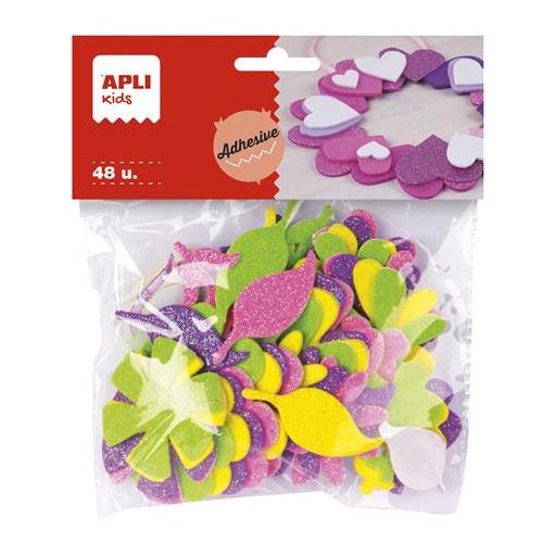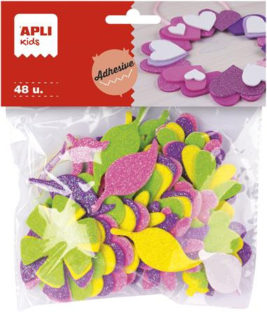 Moosgumi, öntapadó, glitteres, virágok, APLI Kids "Eva Sheets", vegyes színek