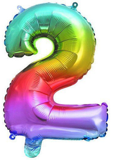 Színes Multicolour Metallic mini 2-es szám fólia lufi 32 cm