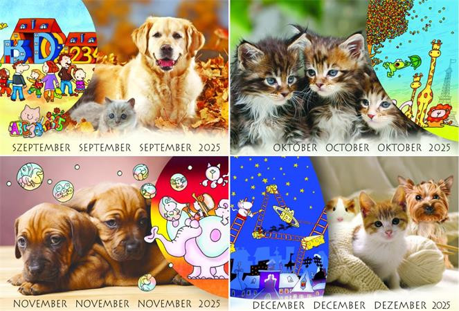 -naptár rész: magyar, angol, német nyelven, magyar ünnepekkel és névnapokkal