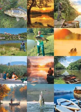 -naptár rész: magyar, angol, német nyelven, magyar  ünnepek  és névnapokkal, napkelte, napnyugta és holdállás  feltüntetésével