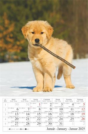 -naptár rész: magyar, angol, német nyelven, magyar  ünnepek  és névnapokkal, napkelte, napnyugta és holdállás  feltüntetésével