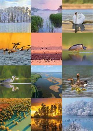 -naptár rész: magyar, angol, német nyelven, magyar  ünnepek  és névnapokkal, napkelte, napnyugta és holdállás  feltüntetésével
