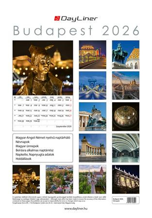 magyar-angol-német nyelvű naptárháló magyar ünnepek névnapok napkelte-napnyugta adatok holdállások napi teendők jegyzet beírására alkalmas rész emblémázható hátkarton fém ikerspirál 14 lap méret: 23x33 cm