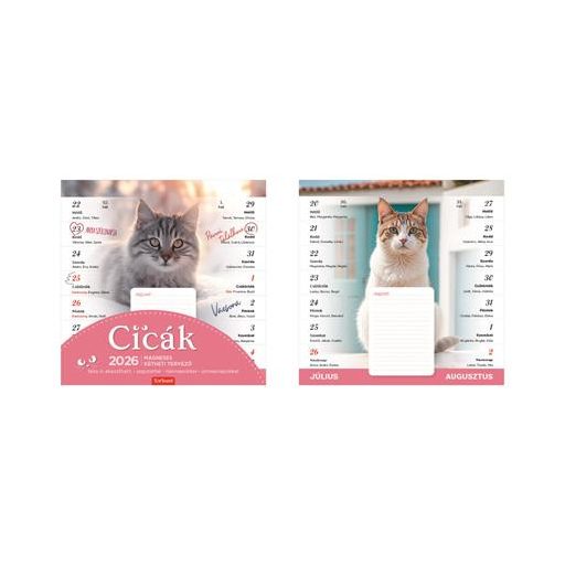 Naptár, fali, mágneses, kétheti, TOPTIMER, cicák