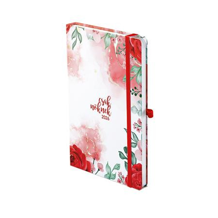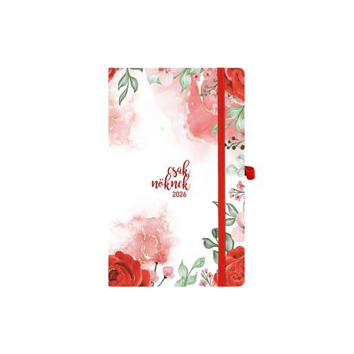 Naptár, tervező, A5, heti, TOPTIMER, "Csak Nőknek", piros virág