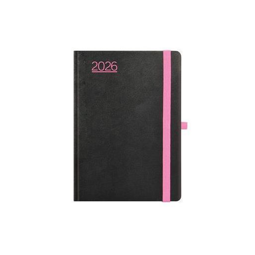 Naptár, tervező, A5, heti, TOPTIMER, "Nero", fekete-pink