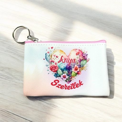 Textilből, cipzárral és kulcstartó karikával.
