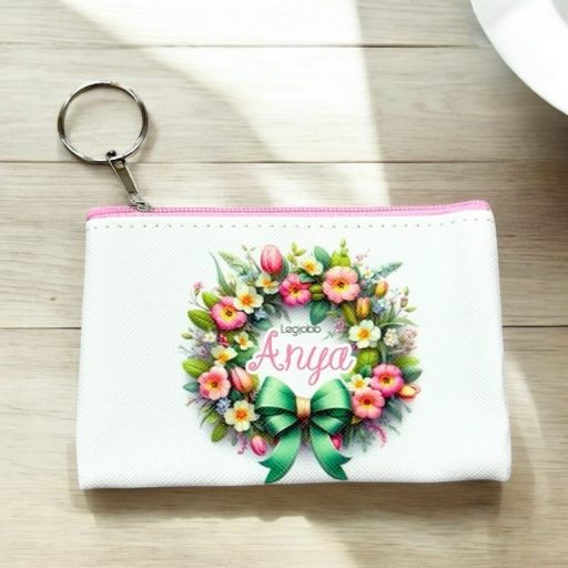 Textilből, cipzárral és kulcstartó karikával.