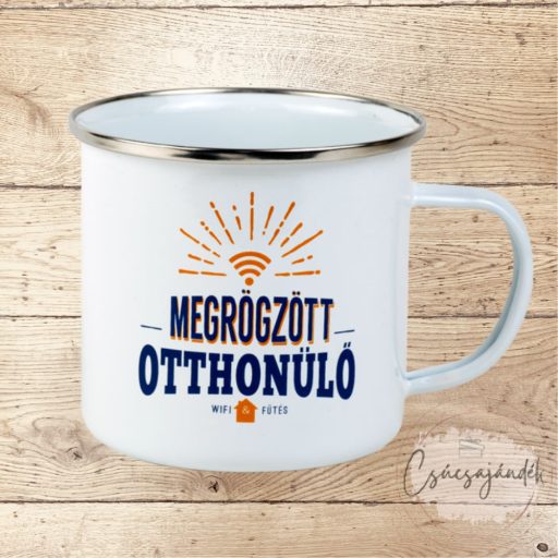 Fehér alapon kék felirat elől és hátul: Megrögzött otthonülő Wifi&Fűtés