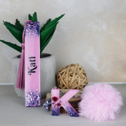 Könyvjelző bojttal és csillámmal, bármilyen névvel kérhető.