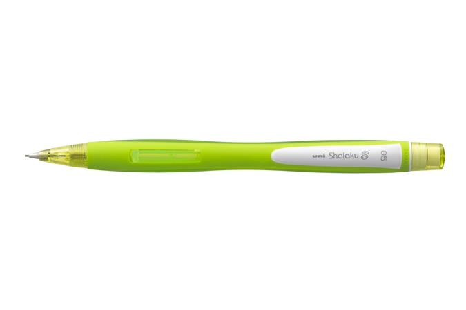 Az Uni SHALAKU S egy mindennapi használatra készült mechanikus ceruza. -praktikus és hatékony, oldalsó nyomó mechanizmussal rendelkezik, amely anélkül adagolja a hegyet, hogy mozgatni kellene az ujjait -ergonomikus és ellenálló tolltest -a ceruza végén beépített radír -vonalvastagság: 0,5 mm