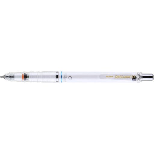 A DelGuard mechanikus ceruza a tökéletes megoldás minden írási feladatodhoz. A szabadalmaztatott technológiájú dupla rugós mechanizmus biztosítja, hogy ne törjön ki a ceruzád hegye. Akár függőlegesen, akár ferdén írsz, védelmet nyújt a törés ellen, így a papíron csak úgy siklik az írásod vele. Csúszásmentes, texturált markolatával a hosszabb jegyzetelést is lehetővé teszi. Fekete, fehér, sötétkékék, világoskék, világoszöld színekben kapható. Beépített radírjával az írás során felmerülő kisebb-nagyobb hibákat is könnyedén korrigálhatod. Erős, műanyag klipsszel biztonságosan rögzíthető a füzethez, zsebhez, így akár mindig kéznél lehet.