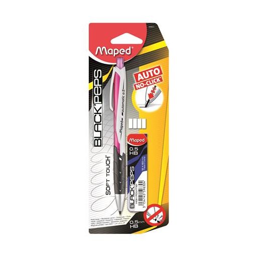 Nyomósirón, 0,5 mm, ajándék grafitbéllel, MAPED "Black`Peps", vegyes színek