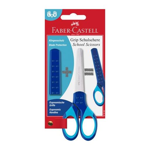 Olló, iskolai, 13,5 cm, pengevédővel, FABER-CASTELL,  kék