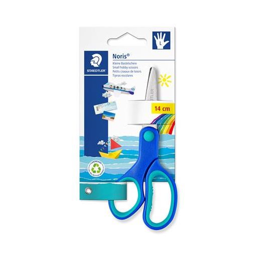 Olló, iskolai, 14 cm, balkezes, STAEDTLER "Noris 965", kék