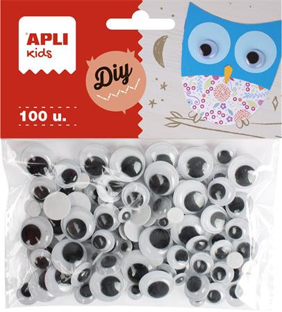 Öntapadó mozgó szem, kör, APLI "Creative", fekete-fehér