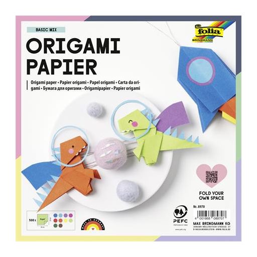 Origami papír, 20x20 cm, 70 g, 500 lap, FOLIA, vegyes színek