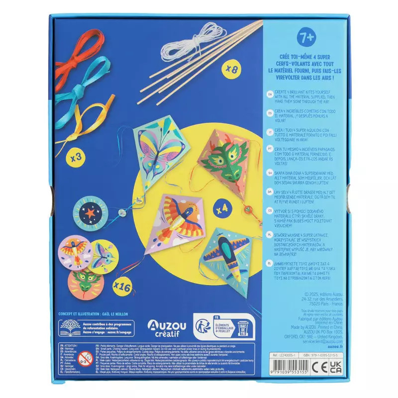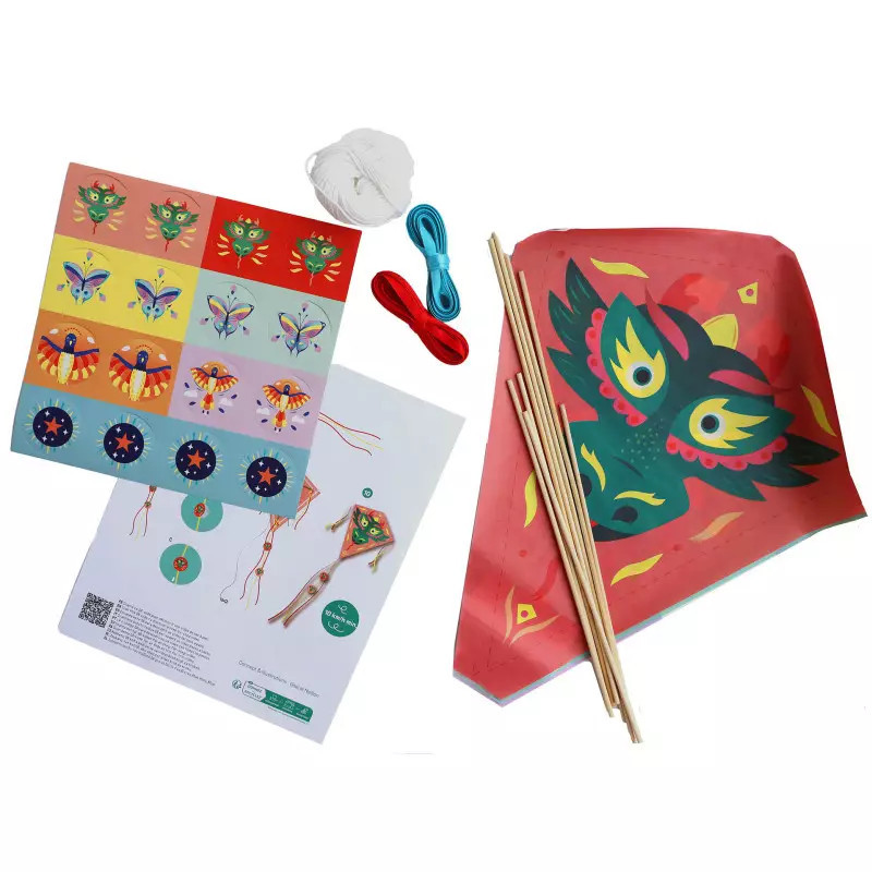 Ebben a készletben minden megtalálható, ami 4 szuper papírsárkány elkészítéséhez szükséges: