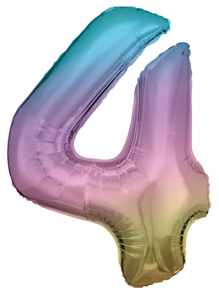 Színes Pastel Rainbow óriás szám fólia lufi 4-es, 86 cm