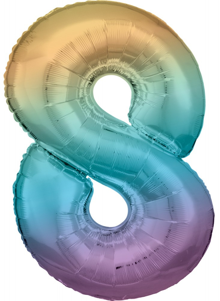 Színes Pastel Rainbow óriás szám fólia lufi 8-as, 83 cm